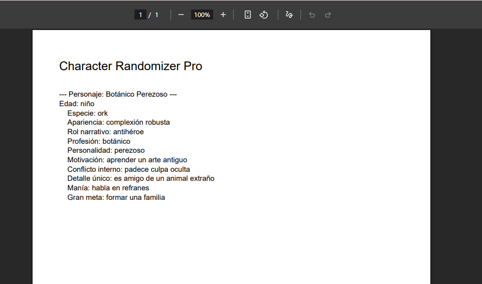 Porque combina grandes listas de atributos profesionales para generar personajes que parecen creados por un humano, no por un simple generador genérico. Cada combinación crea un personaje con profundidad, propósito y conflicto, que es justo lo que le da vida a una historia.